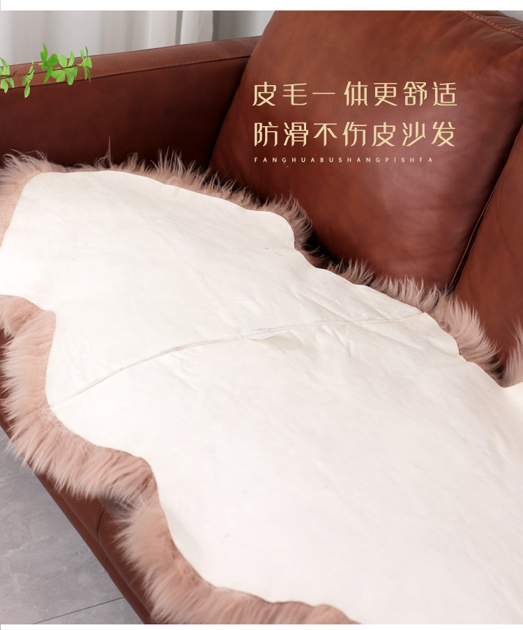 Luxury Cream-Style Genuine Wool & Leather Integrated Sofa Pad | Plush Living Room Fur Mat | Thickened Non-Slip Carpet for Autumn & Winter
